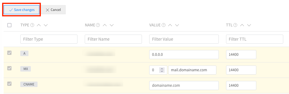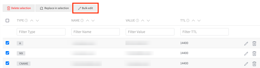 Sélectionnez les enregistrements DNS que vous souhaitez modifier, puis cliquez sur le buttons « Édition groupée ».