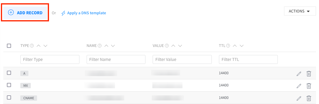 Pour ajouter un enregistrement DNS veuillez cliquer sur le bouton « Ajouter un enregistrement »: