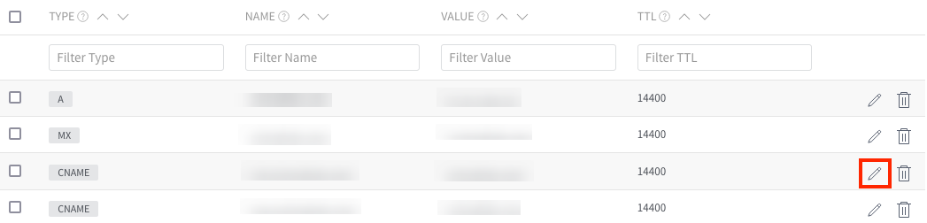 Pour chacun d’eux, entrez directement la nouvelle valeur dans les champs correspondants (valeur ou TTL.).