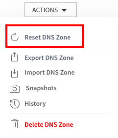Sélectionnez « Réinitialiser la zone DNS » dans le menu déroulant.
