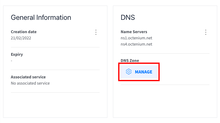 Puis sur le bouton « Gérer » pour gérer la zone DNS.
