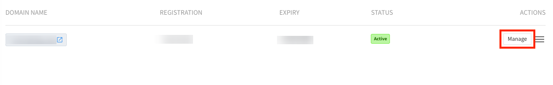 2.Cliquez sur Domaines dans la barre de services située à gauche, puis choisissez le nom de domaine concerné. Ensuite, accédez à l’onglet Administrer.