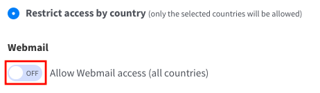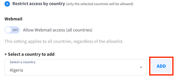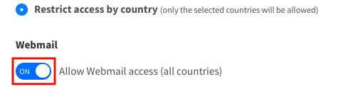 Si vous souhaitez interdire tout accès depuis certains pays, y compris Webmail, désactivez Autoriser l’accès Webmail.