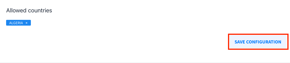 Une fois tous les pays autorisés ajoutés, cliquez sur Enregistrer la configuration pour appliquer vos réglages.